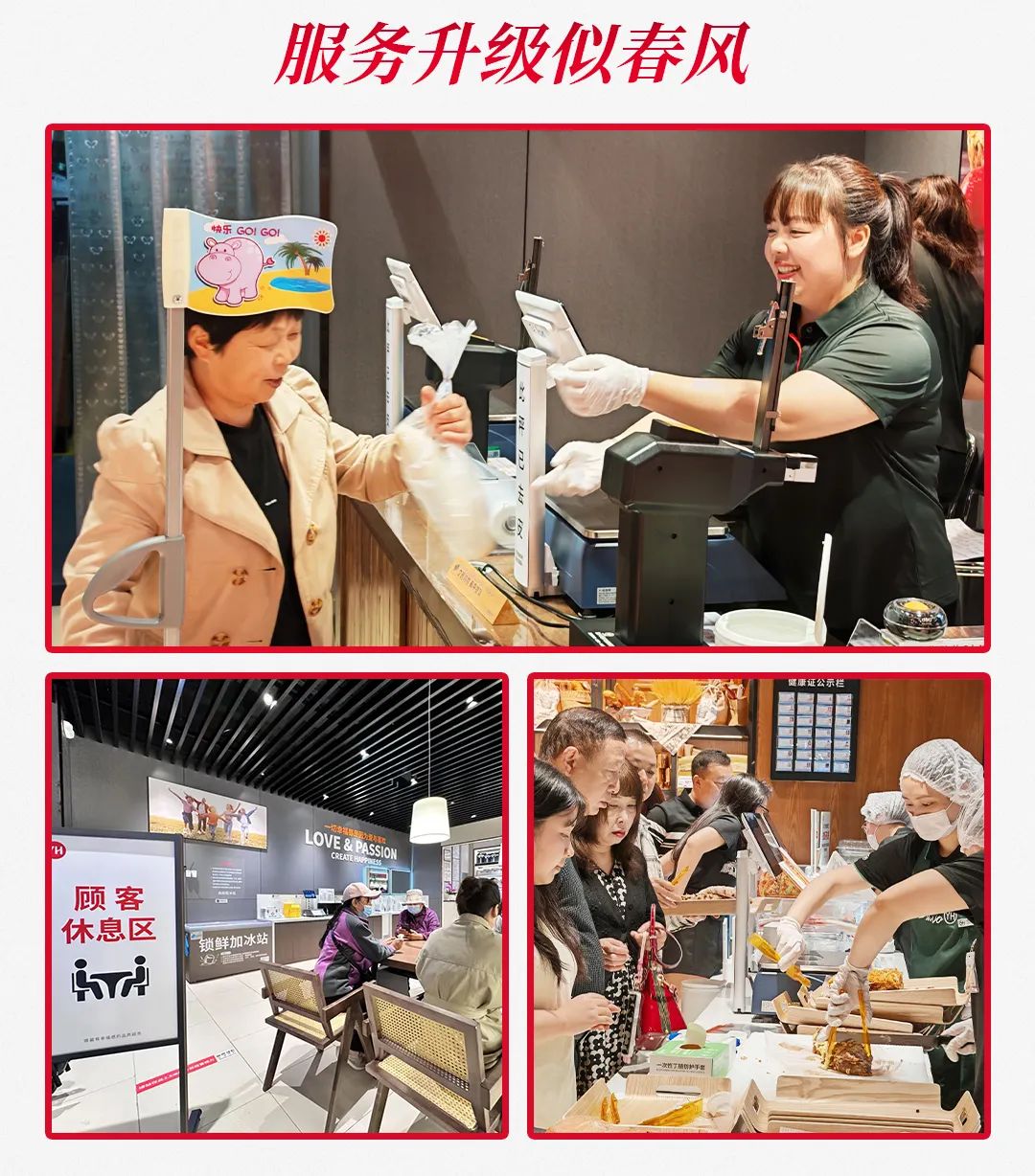 在服務升級的背后,是永輝對員工關懷的系統性提升:一線員工月綜合薪資普遍提升20%-30%,工作滿一年享 10 天帶薪年假,配備獨立更衣室、員工休息室及營養三餐。“員工幸福是服務的起點。” 成都匯融廣場店負責人表示,調改后員工主動服務意識顯著增強,肉檔員工主動為老年顧客講解食材處理方法,生鮮區員工耐心指導果切食用順序,形成 “員工用心—顧客暖心” 的良性循環。
