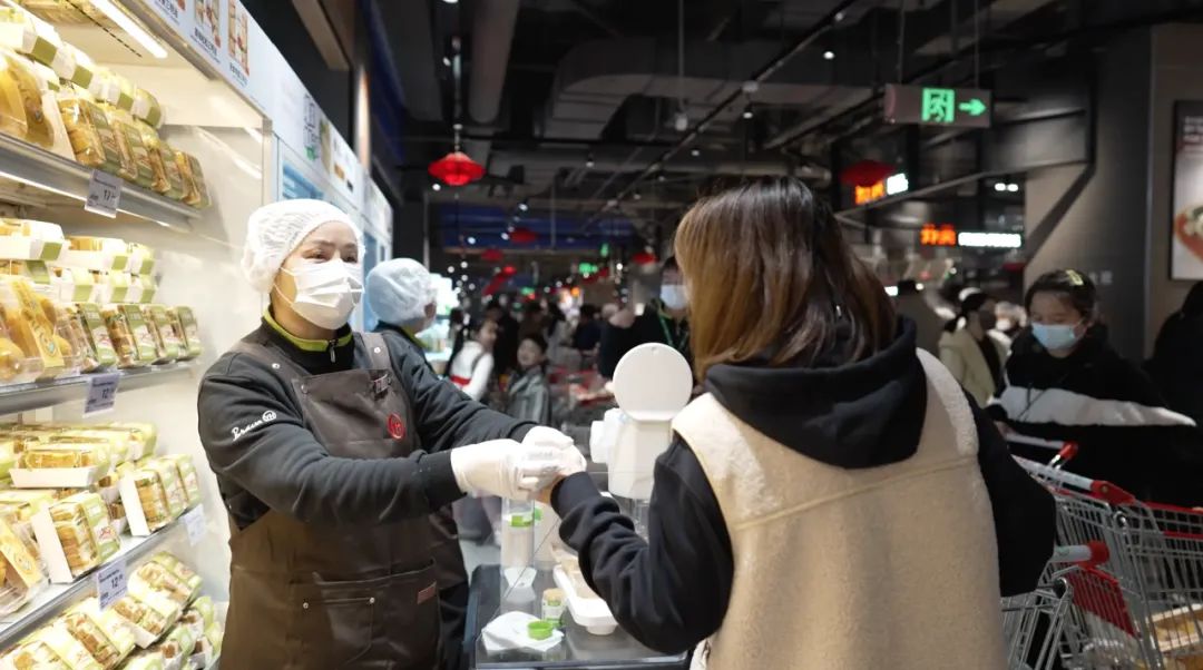試吃員總會在顧客靠近時主動遞上試吃品,紙托里的現(xiàn)烤面包切得方正整齊,一旁的食品級小夾子輕巧地夾起一塊。顧客王女士說:“以前整盒自取總擔(dān)心衛(wèi)生問題,現(xiàn)在像在朋友家做客一樣安心。”這樣的場景,正是永輝試吃體驗的縮影。試吃員上崗前必須通過商品知識考核,從一塊試吃品的尺寸、夾取工具的設(shè)計,到員工遞出時的微笑弧度,每一個細(xì)節(jié)都在無聲地傳遞著“被尊重”的儀式感。