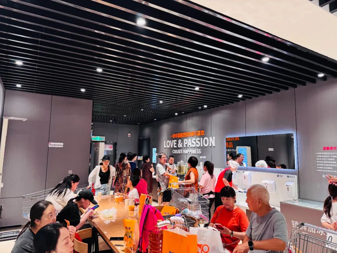 便民關(guān)懷:各店標(biāo)配顧客休息區(qū),集成身高體重秤、血壓計(jì)、直飲水、微波爐;寵物安置區(qū)解決攜寵購(gòu)物難題;各個(gè)門店更提供免費(fèi)菊花茶、應(yīng)急藥箱及1小時(shí)免費(fèi)充電寶,成為高溫下的“清涼驛站”。