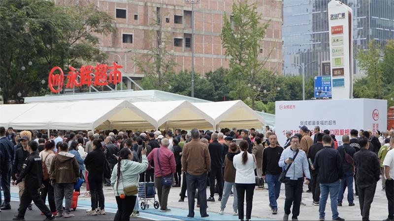 門店和商品中的四川元素,是我們送給成都市民的一個(gè)彩蛋。我們?cè)趫?chǎng)地設(shè)計(jì)上加入了大量的熊貓毛絨玩偶及立體擺件,復(fù)刻了春熙路網(wǎng)紅爬墻熊貓,商品上,藏香豬、劍閣雞、雅魚、張飛牛肉、樂山甜皮鴨、四川八大怪糕點(diǎn)系列等等川渝人的兒時(shí)味道都被擺上貨架——胖東來的理念和文化、永輝超市的真誠和品質(zhì),加上些許川味兒,麻辣鮮香。