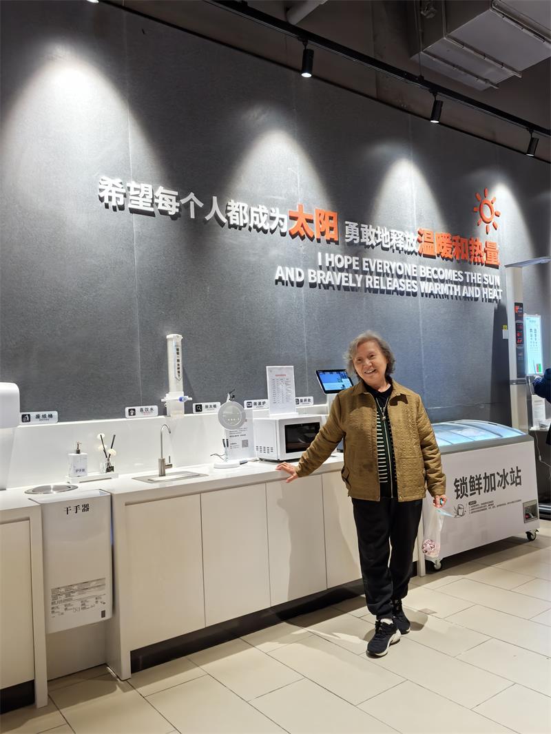 門店外,為排隊(duì)的客人們準(zhǔn)備遮陽棚、礦泉水和小板凳,幫離店的銀發(fā)族拎重物。門店里,便民區(qū)的血壓測(cè)量、視力測(cè)試、直飲水、洗手臺(tái)、放大鏡,都是備受顧客喜愛的新服務(wù)。工作人員甚至?xí)贸咦訙y(cè)算寵物尿墊的大小,來做好寵物的照料。